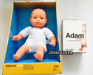 Abacus nos presentó una campaña de concienciación a la hora de comprar los juguetes pensada para la campaña de Navidad llamada "Adam: esta navidad no compremos estereotipos" en el que se pretende no discriminar los juguetes por sexo. Nos obsequiaron con distintos productos personalizados, en nuestro caso nos tocó el siguiente muñeco. Además también nos obsequiaron con la caja del Adam, una caja que contiene unas gafas para ver el mundo sin estereotipos. En la foto nos veis a las asistentes llevándolas puestas.